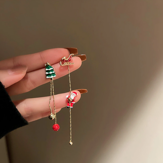 14K Gold Climbing Santa Claus Christmas Tree Earrings