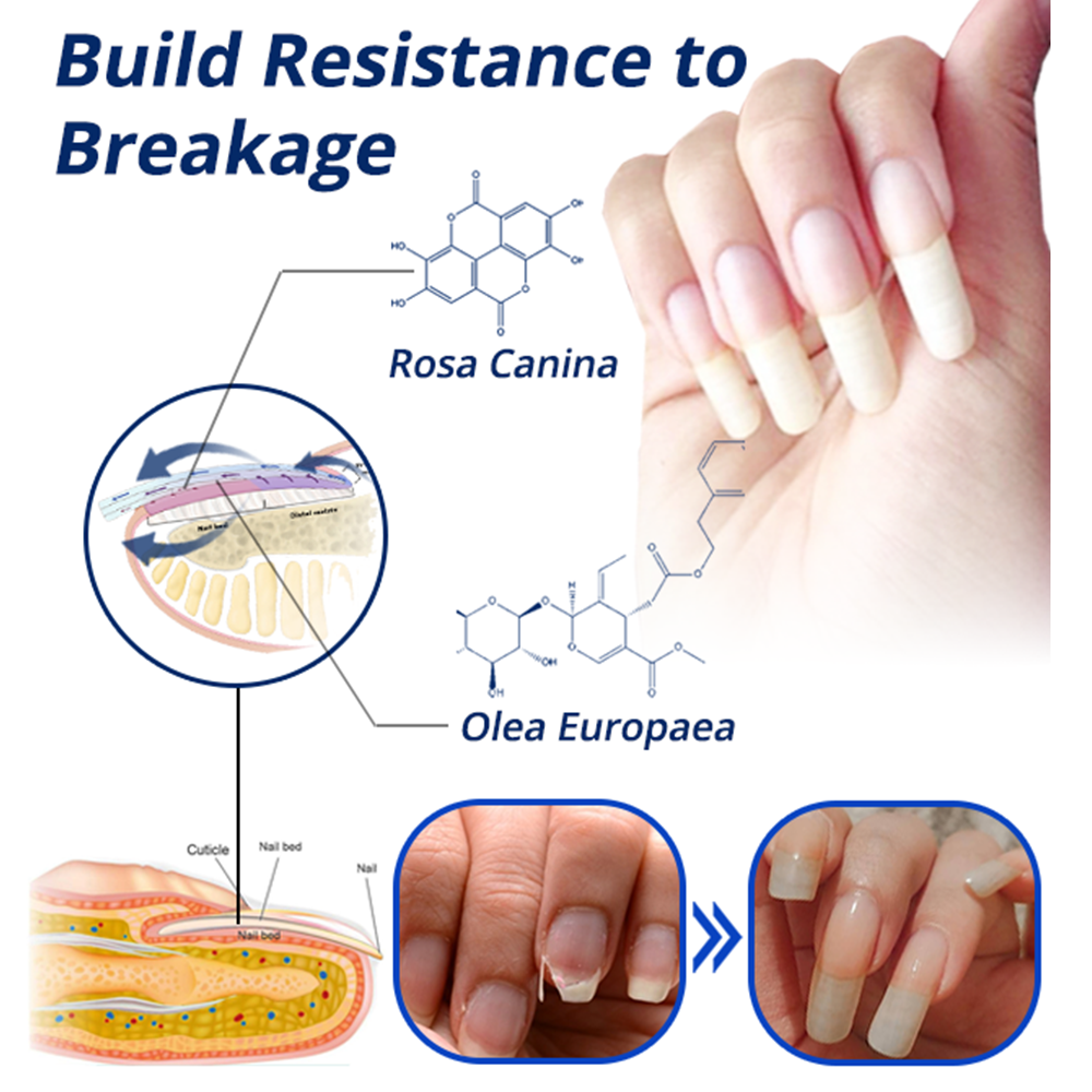 Our innovative 7-Day Nail Essence Pen helps nourish, promote growth, and fortify natural nails. Our formula contains a blend of beneficial ingredients and vitamins that nourish nails and make them stronger. Olea Europaea and Rosa Canina form the base of our serum, designed to keep nails from breaking, making them thicker and stronger. This protective layer helps nails grow longer and stronger without becoming brittle or weak.