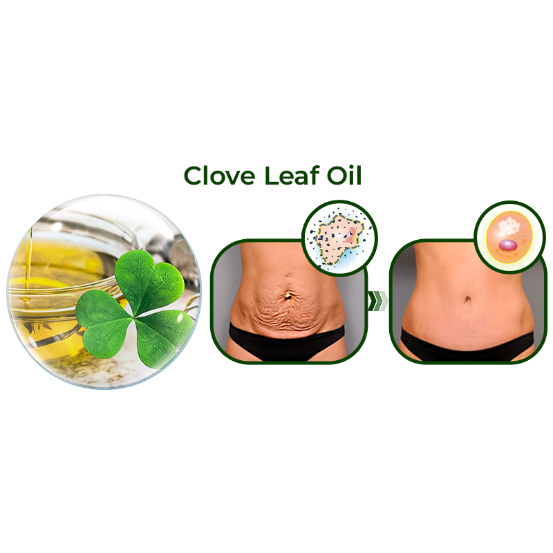 Clove Leaf Oil: Clove leaf oil contains antioxidants that help protect the skin from free radical damage. Free radicals will contribute to the breakdown of collagen and elastin fibers leading to sagging skin. By providing antioxidant support, clove leaf oil considerably help maintain the skin's elasticity and firmness.