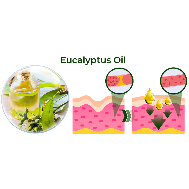 Eucalyptus Oil: Eucalyptus oil has stimulating properties that can promote blood circulation. Improved circulation can help deliver essential nutrients and oxygen to the skin cells substantially aiding in the revitalization of sagging skin.