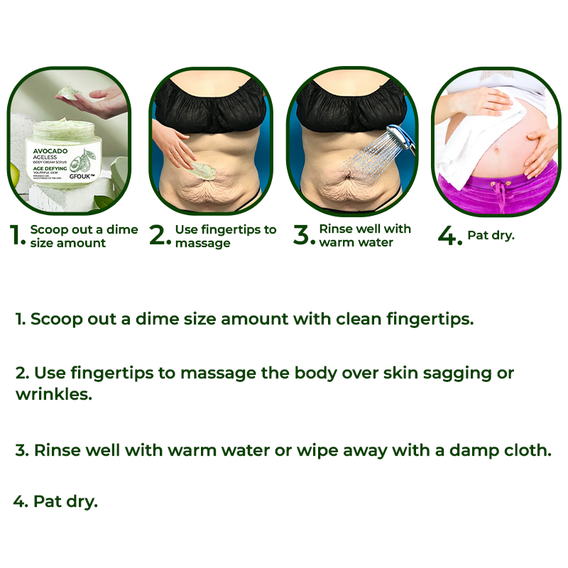 "After I had my baby, I started to get a lot of lines on my belly and my skin started to look flabby. As a result, I had postpartum depression because of this, so my husband took me to a psychiatrist. This female physiologist shared the same experience as I did. She said that she ended up with no belly lines because she used GFOUK ™️ Avocado Ageless Body Cream Scrub. She used it for about two months and the lines on her belly were gone. She also said that the avocado formula of this product is all natural and will not affect her body after delivery. Finally, I bought this product and used it for two months. One day when I looked in the mirror in the bathroom, I noticed that the lines on my belly were really gone! And my skin was firmer too! It was amazing! Later, my postpartum depression was also cured. I'm really grateful to this physiologist! I decided to buy two more about this body cream scrub!" - Winnie Sadie, 45