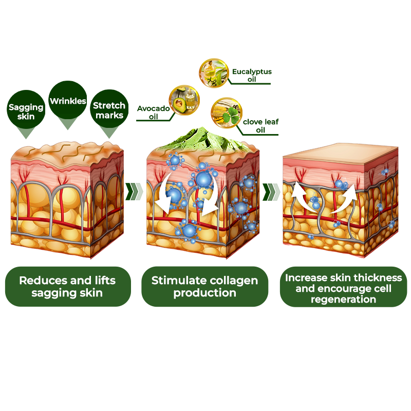 GFOUK™️ Avocado Ageless Body Cream Scrub reduces and lifts sagging on the skin through its combination of key ingredients. Avocado oil, eucalyptus oil and clove leaf oil stimulate collagen production, increase skin thickness and encourage cell regeneration, ultimately diminishing the appearance of wrinkles and sagging. The cream's biochemistry replenishes collagen diminishing sagging and wrinkles while also replenishing hydration, making skin look supple and youthful.