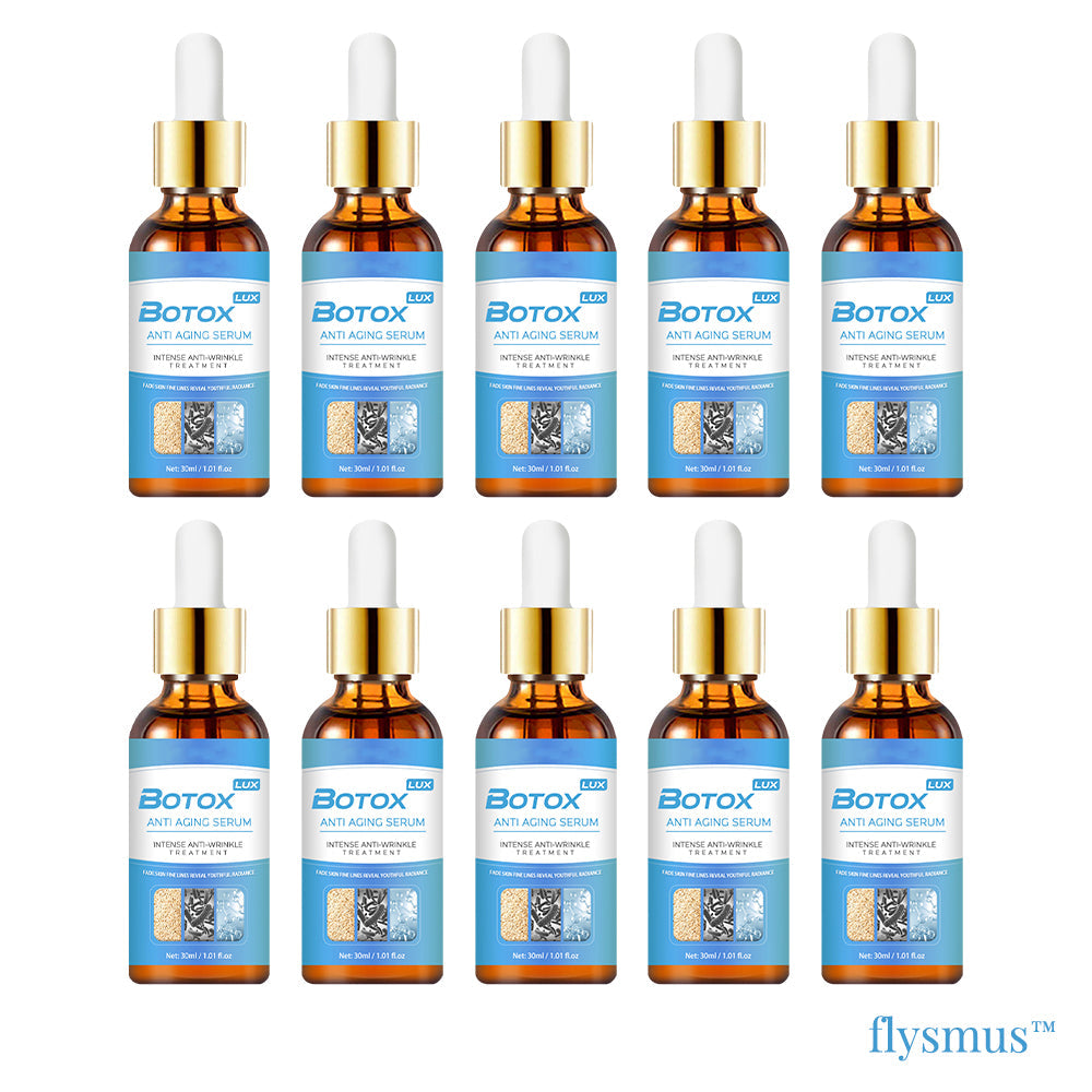 flysmus™ BotoxLUX Anti Aging Serum is a revolutionary anti-wrinkle treatment that boasts some of the most innovative ingredients on the market. This serum is specially formulated to smooth fine lines and wrinkles while improving skin texture and tone. It contains a powerful blend of Argireline, collagen peptide, and other cutting-edge ingredients that work together to hydrate and plump the skin, leaving it looking and feeling rejuvenated.