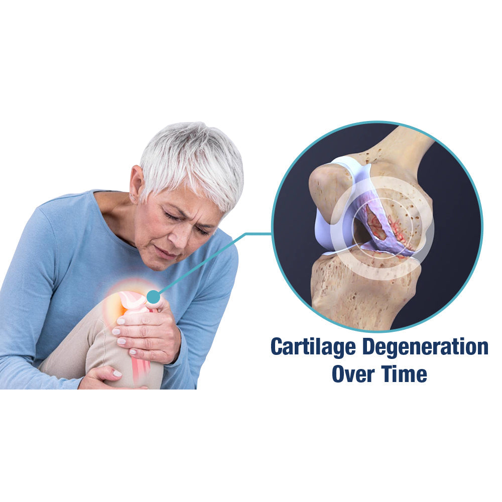 Cartilage is a type of connective tissue found in various parts of the body, including joints. As cartilage deteriorates with age, it becomes thinner and less able to withstand the stresses placed upon it. Without an adequate cushioning layer of cartilage, the bones may begin to rub against each other, this can result in pain, Inflammation and reduced mobility in the affected joint.