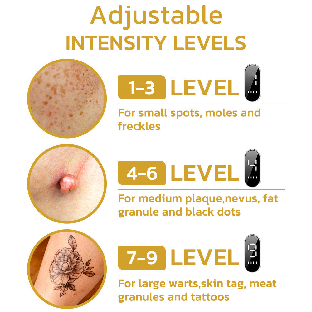 Crafted with user convenience in mind, this exceptional beauty pen features an ergonomic design that ensures a comfortable grip and maneuverability, enabling precise application even in challenging areas. Equipped with adjustable intensity levels, it allows you to tailor the treatment to your skin type and sensitivity, effectively removing unwanted skin issues. The clear visibility of selected settings makes operating the pen effortless, providing a seamless experience for users seeking precise and efficient tattoo removal.