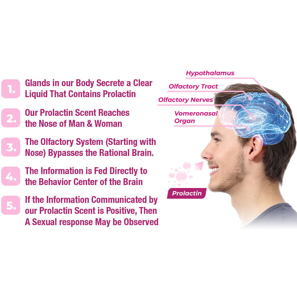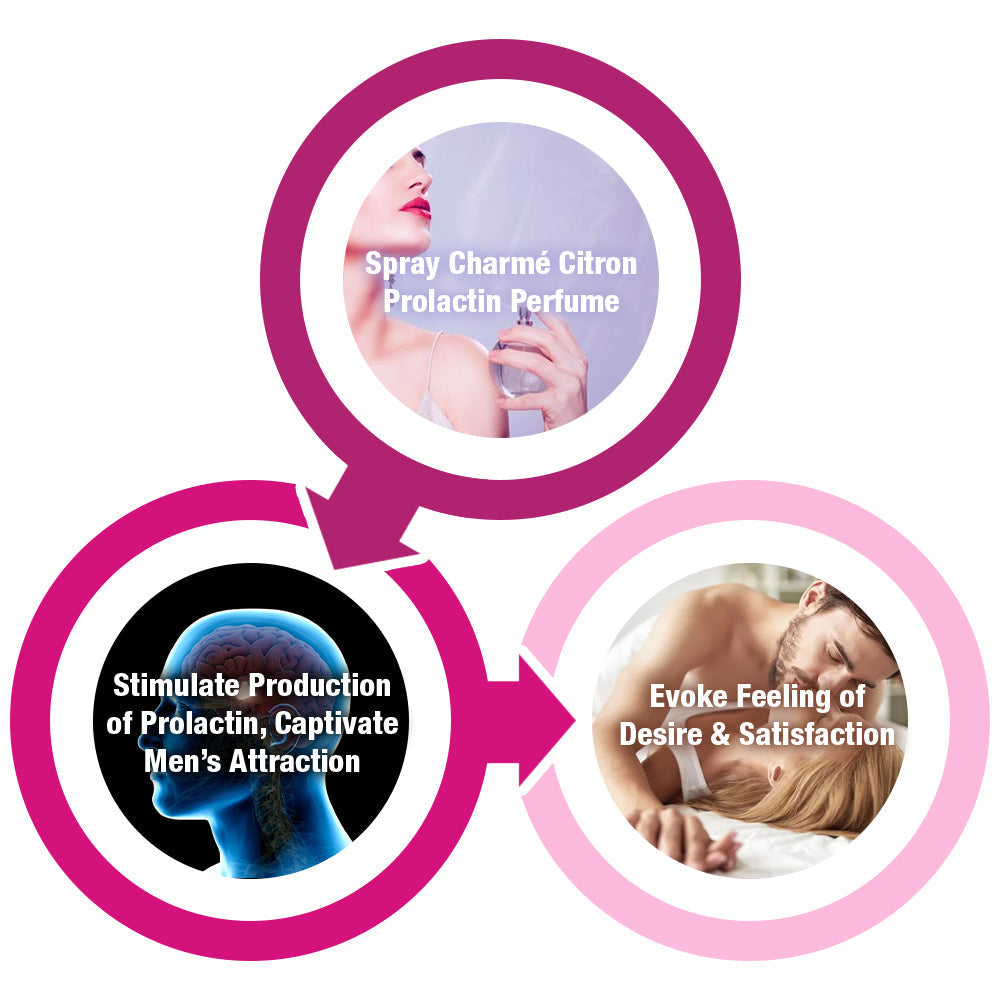 With Charmé Essence of Prolactin Elixir, we've harnessed the power of scent to evoke the natural production of prolactin. Prolactin, a hormone associated with feelings of satisfaction and relaxation, As wearers immerse themselves in the captivating aroma, the elixir's carefully crafted molecules gently stimulate the body's hormonal responses, triggering a surge in prolactin levels. It plays a vital role in stimulating chemistry, desire, and hormonal responses.