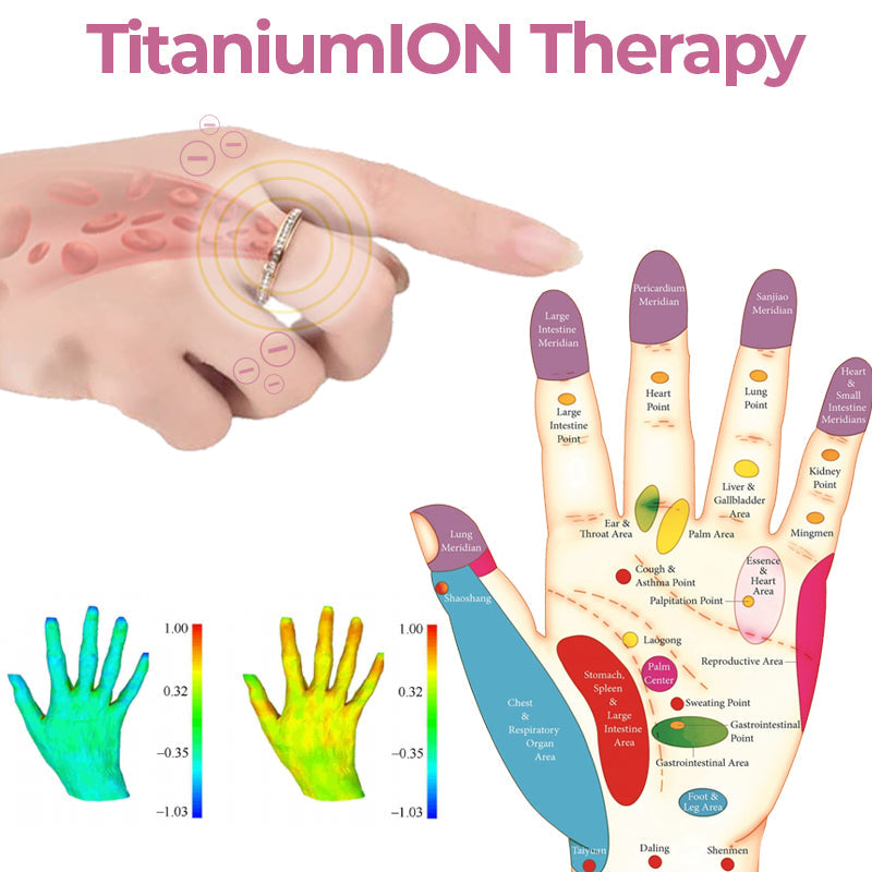 The unique properties of the Titanium Steel Thermal Detox Rotating Ring work in conjunction with ion treatment to help separate blood cells from one another and clear blockages from blood vessels to improve flow. The elimination of irregularities like plaque or emboli and obstructions is facilitated by the use of ion therapy with bandages (stenosis).
