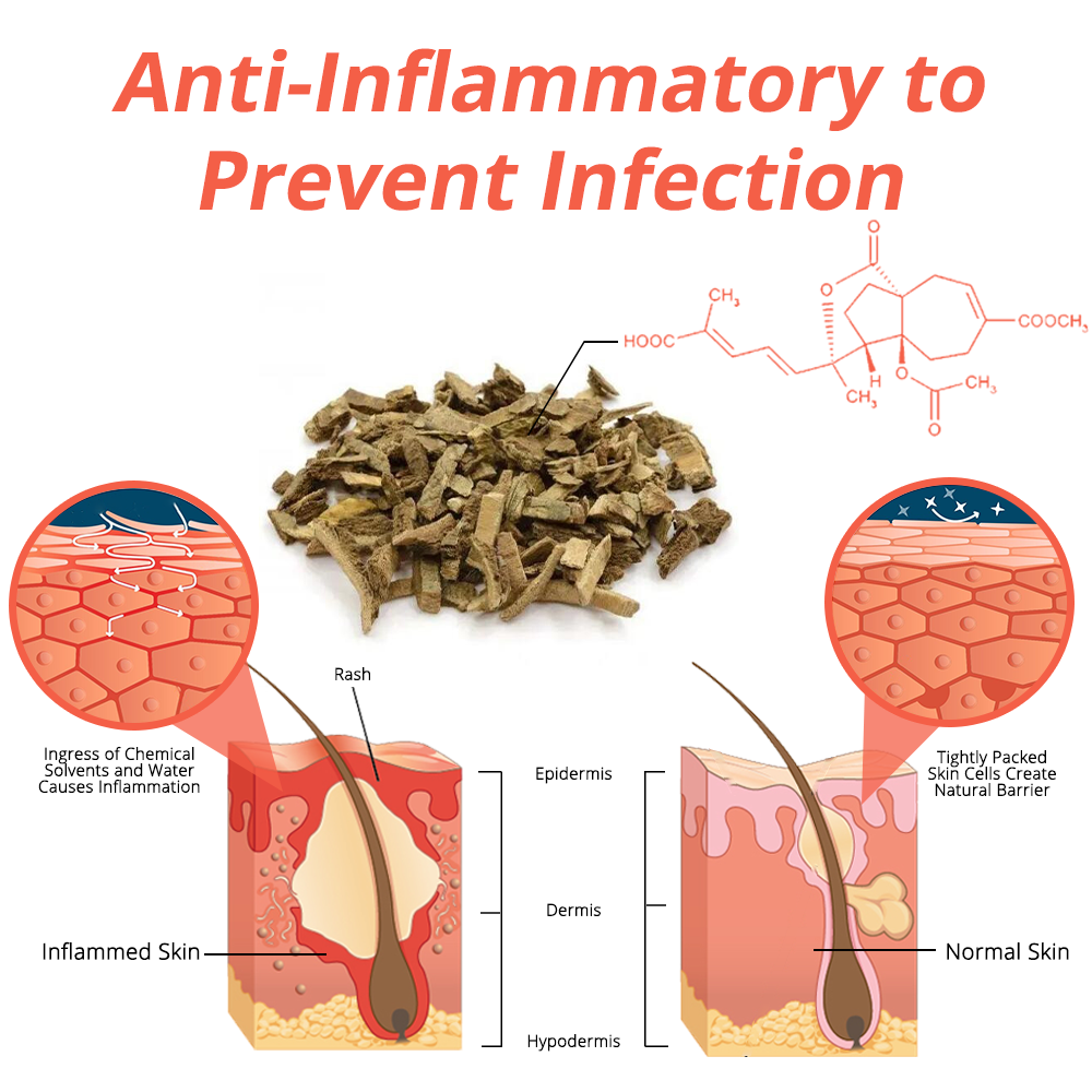 Fructus cnidii has anti-inflammatory and antipruritic properties, which can help reduce inflammation and itching and prevent infection in the affected area. It works by inhibiting the release of histamine, a chemical that triggers the allergic response and causes itching and inflammation. Plus, it can help to alleviate the symptoms of heat rash, such as itching and redness, while also preventing further complications from developing.
