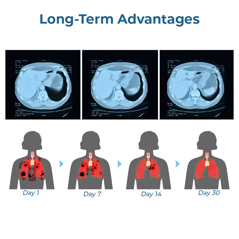 Following a meticulous analysis of the CT scans conducted both before and after the test, a striking revelation emerged: the pulmonary residues in individuals had experienced a remarkable reduction, nearly reaching imperceptible levels with an extraordinary reduction rate of 99.94%.