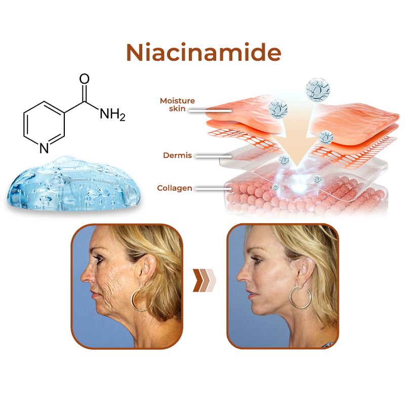 Ceramides are natural lipids found in the skin that help maintain its moisture barrier. Niacinamide encourages the production of ceramides, which aids in improving skin hydration and barrier function. A strengthened skin barrier can prevent sagging by maintaining optimal hydration levels.