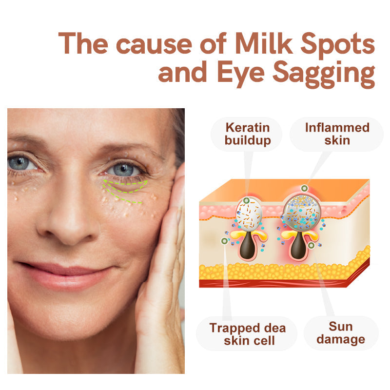 Eyes sagging is caused by weakened tissue and muscles, fat moving into the area below the eyes & fluid build-up. GFOUK™ Milk Spots Therapy Electric Serum Pen is designed to reduce milk spots & sagging effectively & naturally.
