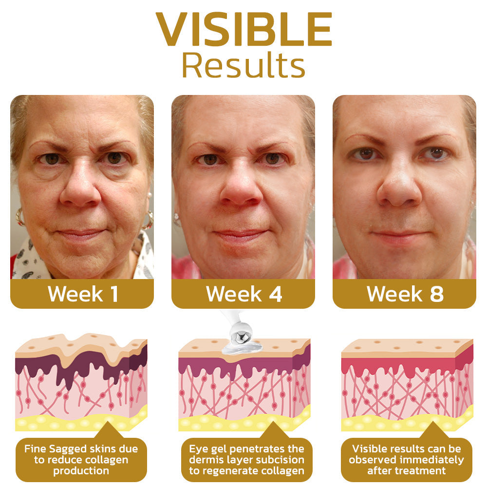 “Let me start by saying that I've never come across an eye product as effective as this flysmus™ Golden Palmitoyl Peptide Caffeine Lifting Eye Gel. Just take a look at how my skin has transformed after just a few weeks of use! I'm seriously shocked by how it's made me look on par with friends who are a good 10 years younger. The change in my eye's appearance was almost immediate. I'm really impressed with how this serum revitalizes my drooping skin, providing a noticeable lift without making it feel greasy. I'm definitely sticking with this gem to keep restoring my skin to a more youthful state!” - Sally Straig