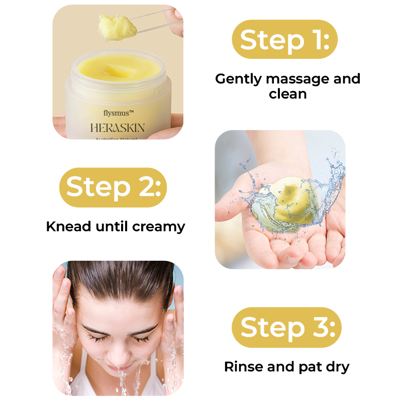 Our flysmus™ HERASKIN Australian Natural Pamper Cleansing Balm offers more than just a deep cleanse. It goes beyond removing the harmful substances found in cosmetics and effectively eliminates stubborn dirt that can be difficult to wash away from the skin. What sets it apart is its ability to safeguard the sebum barrier, the protective layer on the skin's surface to helping regulate the delicate equilibrium between oil and water, preventing the proliferation of acne-causing bacteria and slowing down the expansion of fine lines. In addition, it is not only combining the benefits of cleansers and skincare products, but it does not cleaning out the sebum barrier comparing with others cleansing products, only cleaning out all the harmful dirt in skin.