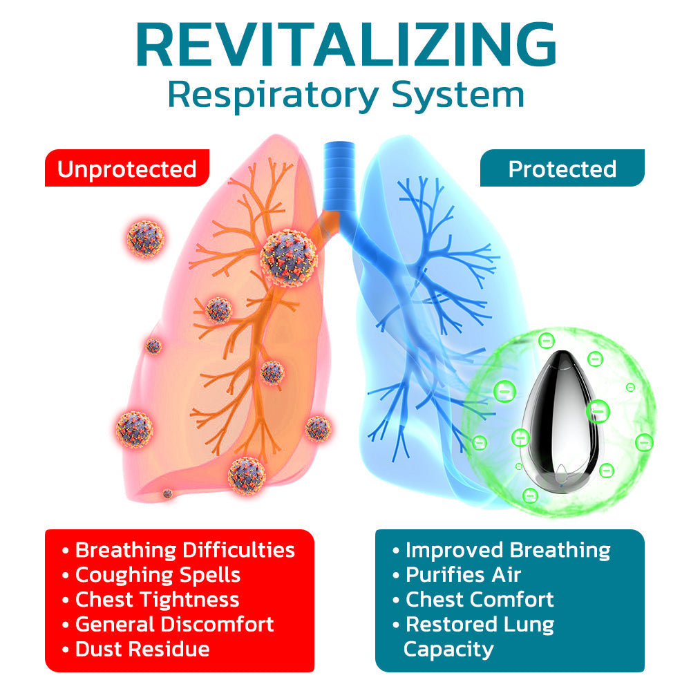 The GFOUK™ ImmaculateLungs Carry-on Air Purifier has the capacity to offer enduring advantages by aiding in the removal of toxins and impurities from the lungs. This purification process may contribute to enhancing overall respiratory health and lung function over an extended duration. Additionally, it can have specific effects on the human respiratory system, including the reduction of asthma and allergy reactions, improvement in respiratory symptoms, and more.