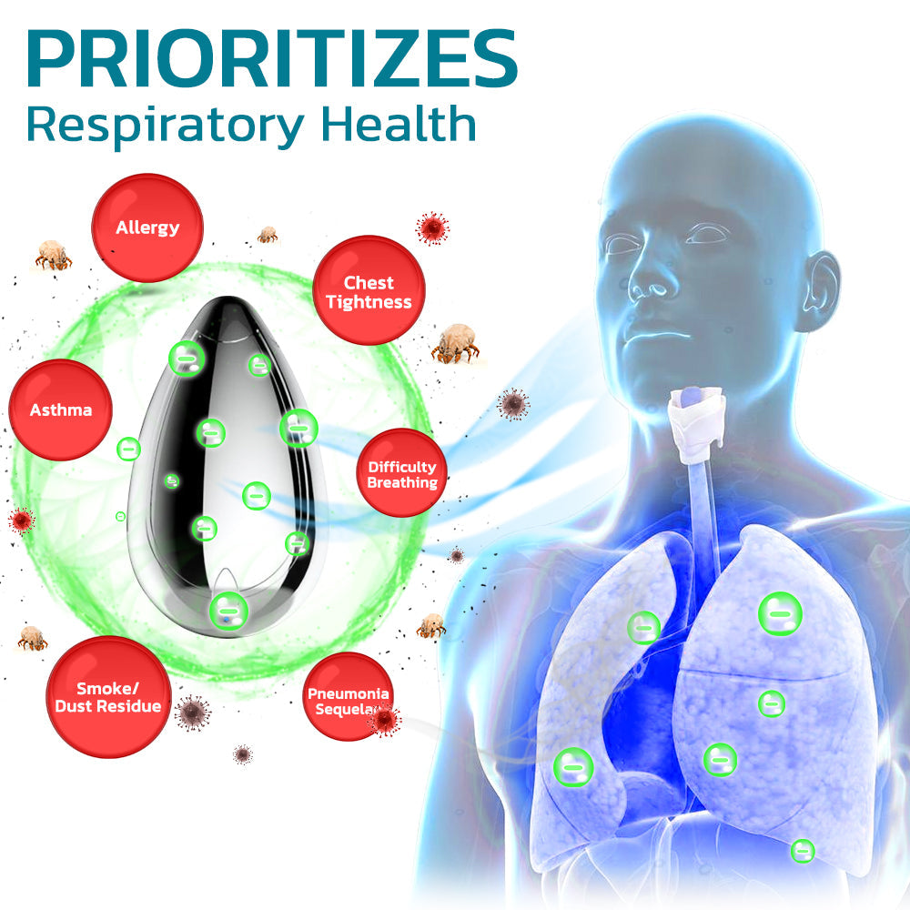 The GFOUK™ ImmaculateLungs Carry-on Air Purifier has the capacity to offer enduring advantages by aiding in the removal of toxins and impurities from the lungs. This purification process may contribute to enhancing overall respiratory health and lung function over an extended duration. Additionally, it can have specific effects on the human respiratory system, including the reduction of asthma and allergy reactions, improvement in respiratory symptoms, and more.