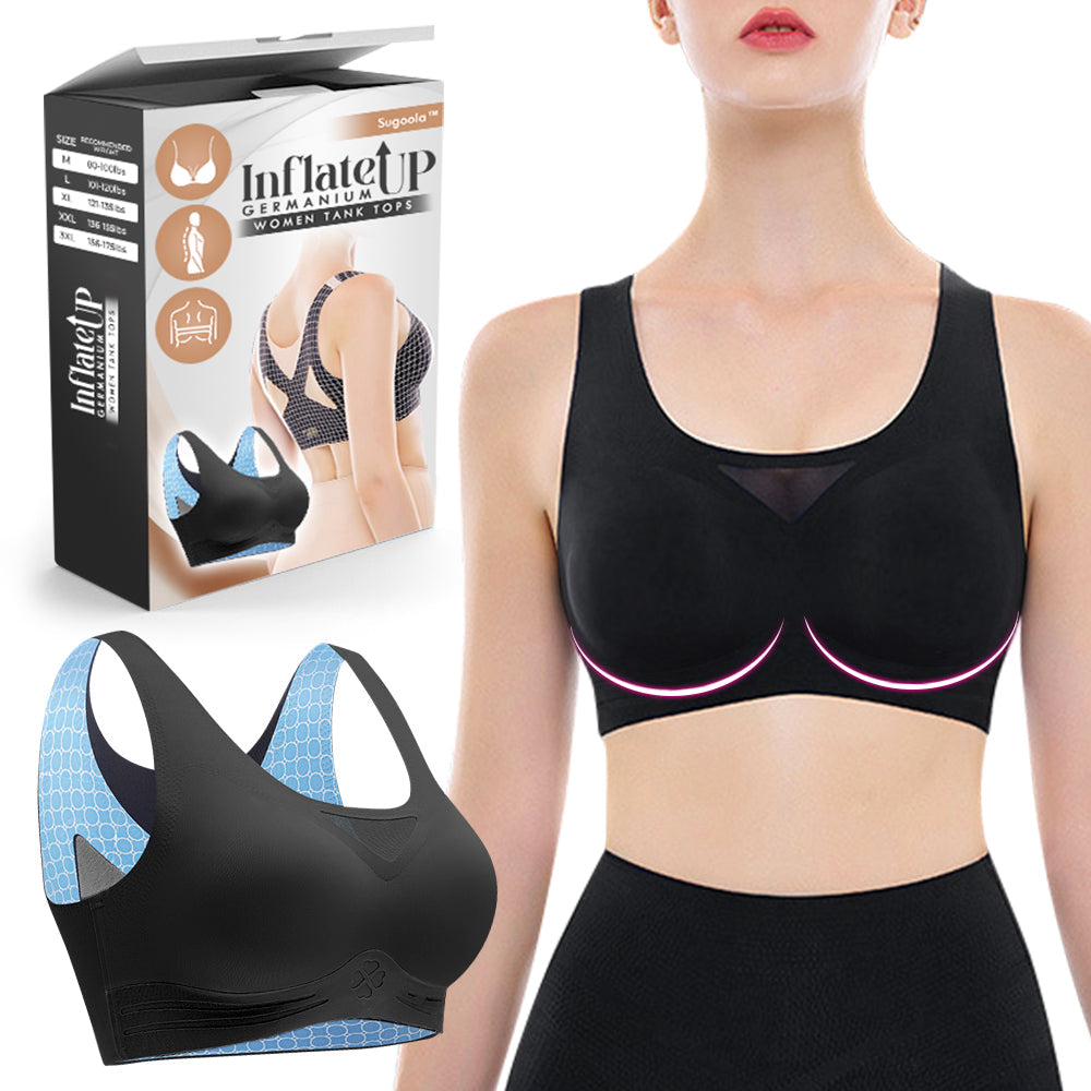 Enhance your posture and alleviate back discomfort with the Sugoola™ InflateUP Germanium Women Tank Tops. This tank tops is meticulously crafted to promote better posture by adjusting metabolism, pushing arm and sub-mammary fat back into your breasts, helping your muscles return to their proper position, potentially through compression and support. Additionally, if it incorporates graphene technology, it might contribute to a thermogenic effect, promoting increased heat and potentially assisting in the burning of fats around the back fat, and simultaneously boosting blood circulation.