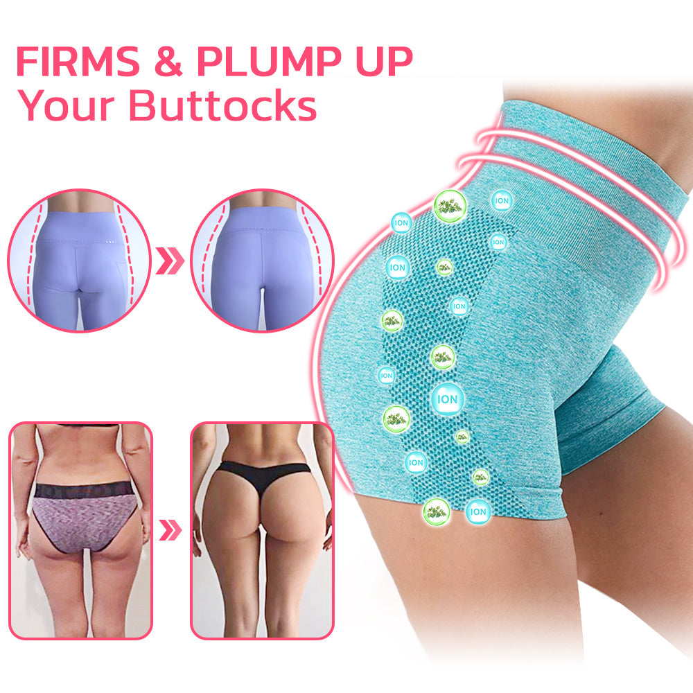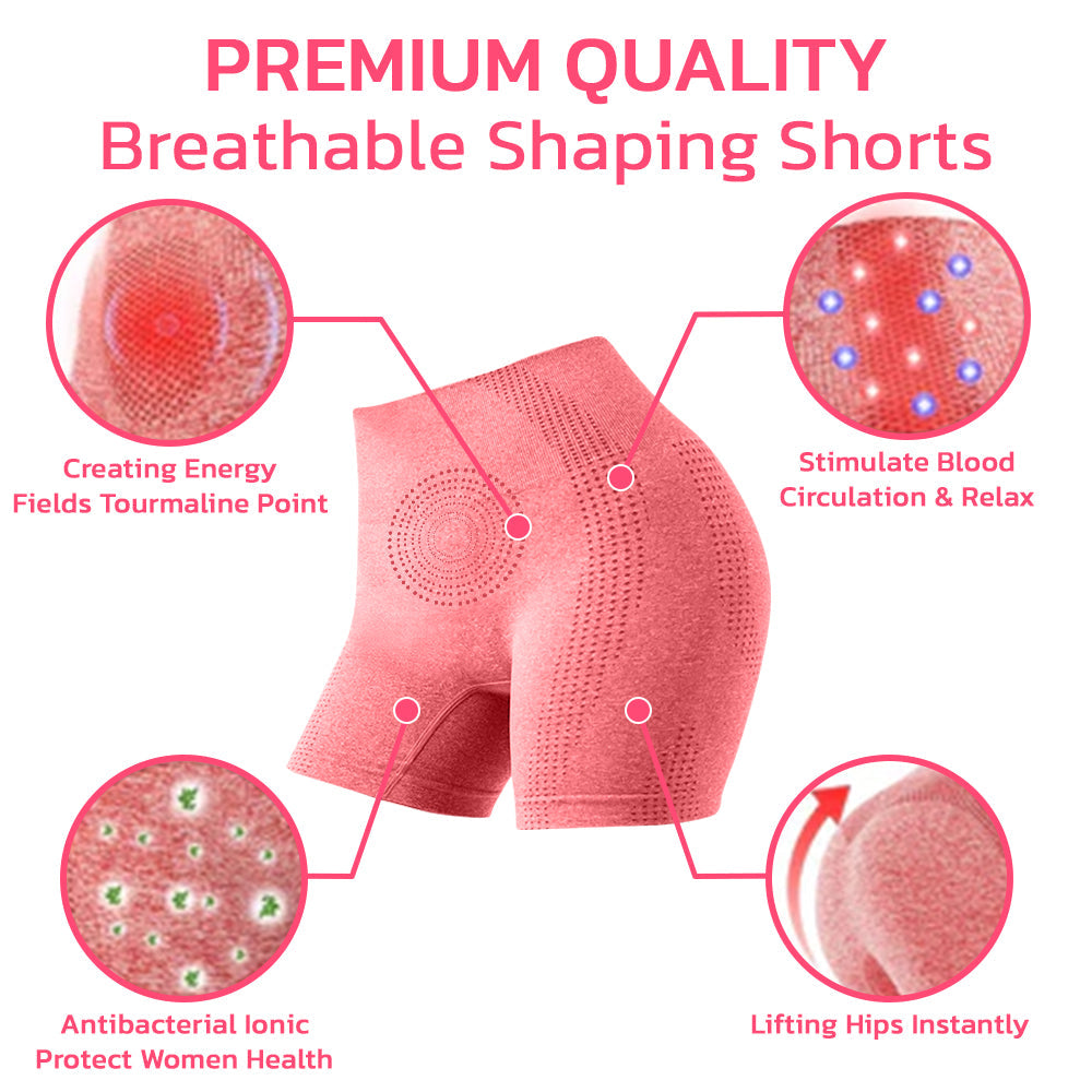 The GFOUK™ IONIC Tourmaline Fabric Breathable Shaping Shorts utilize massaging properties and ion release to stimulate collagen production. This process helps tighten and lift sagging or misshapen buttocks, resulting in the disappearance of loose skin and excess fat.