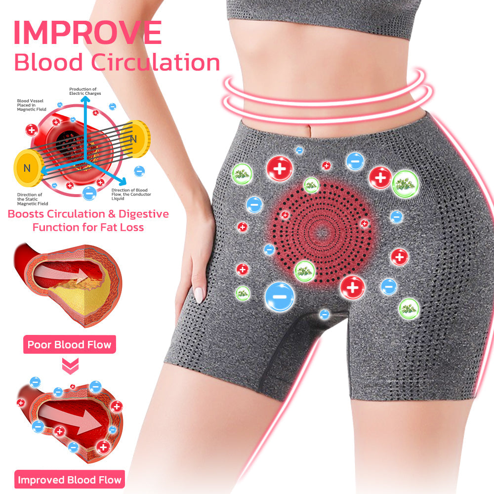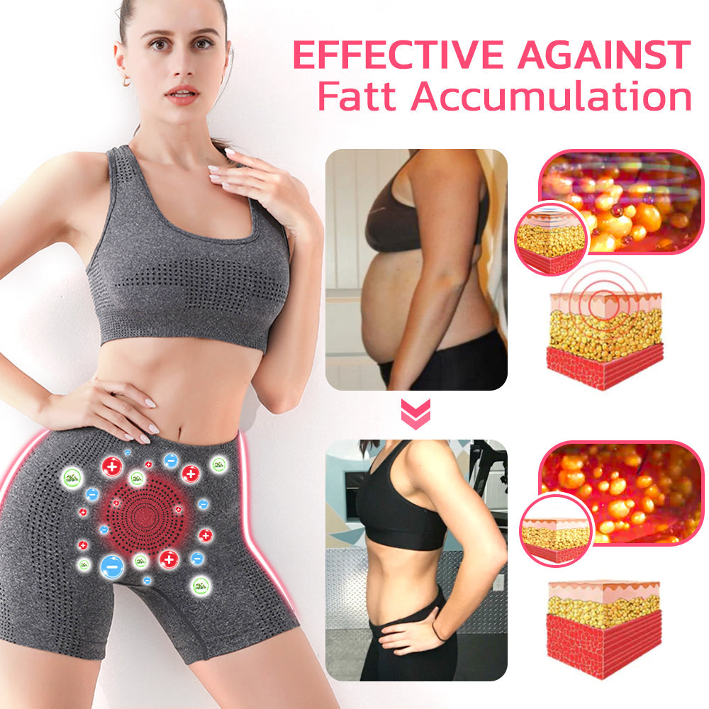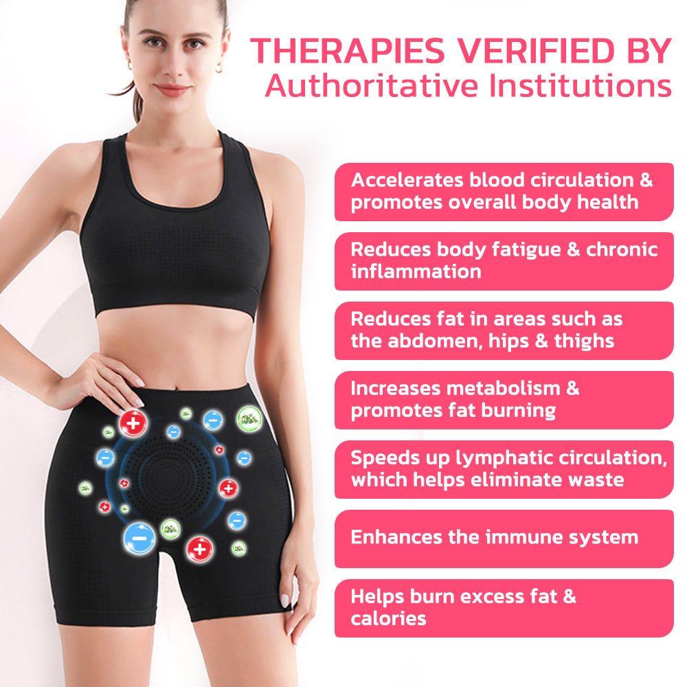 GFOUK™ IONIC Tourmaline Fabric Breathable Shaping Shorts activate more than 800 reflex points in the abdominal area. These specially designed yoga shorts utilize ion therapy, far-infrared therapy, and absinthe therapy to generate energy independently, without requiring an external power source like electricity. By combining these therapeutic approaches, the shorts offer users a comprehensive massage and stimulation experience. They effectively enhance blood and lymphatic circulation, alleviate lymphedema and inflammation, and minimize fluid retention and cellulite buildup in the body.