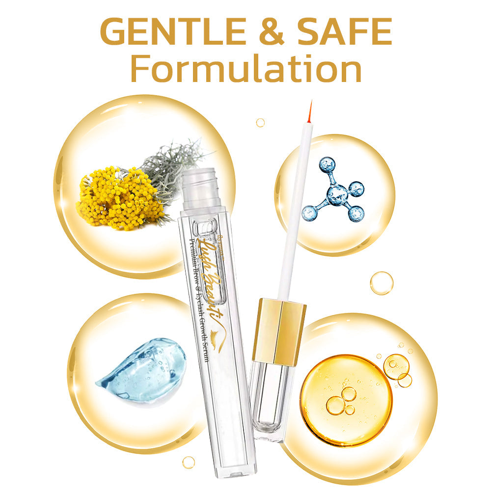 The formulation of flysmus™ LushBeauti Premium Brow and Eyelash Growth Serum prioritizes the well-being and sensitivity of your delicate eye area. Carefully crafted with a gentle approach, this serum is free from harsh chemicals, parabens, and sulfates, ensuring a safe and non-irritating experience.