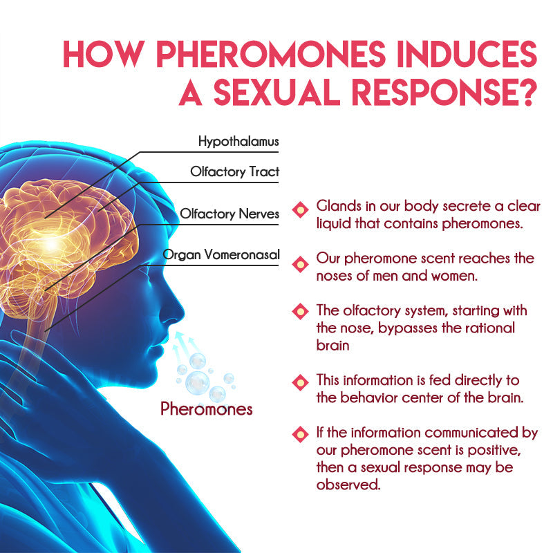 When the pheromone-infused aroma arrives at the nostrils, it stimulates the olfactory system, bypassing the rational brain. This sensory information is sent to the behavior center in the brain, where it produces a positive effect on basal behavioral responses.