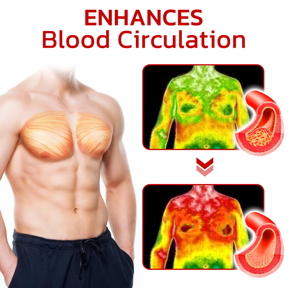 By improving circulation, it helps metabolize fat stores, contributing to the reduction of excess fat tissue in male breasts.