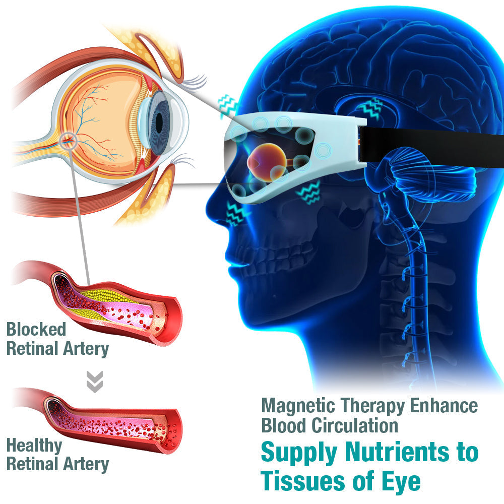 The OphthalPro Vision Enhancement Device integrates advanced multi-frequency vibration enriched with magnetic therapy, designed to attract iron in the blood for improved circulation. This innovative approach aims to enhance the supply of oxygen and essential nutrients to the delicate tissues of the eyes, to relief specific eye diseases.