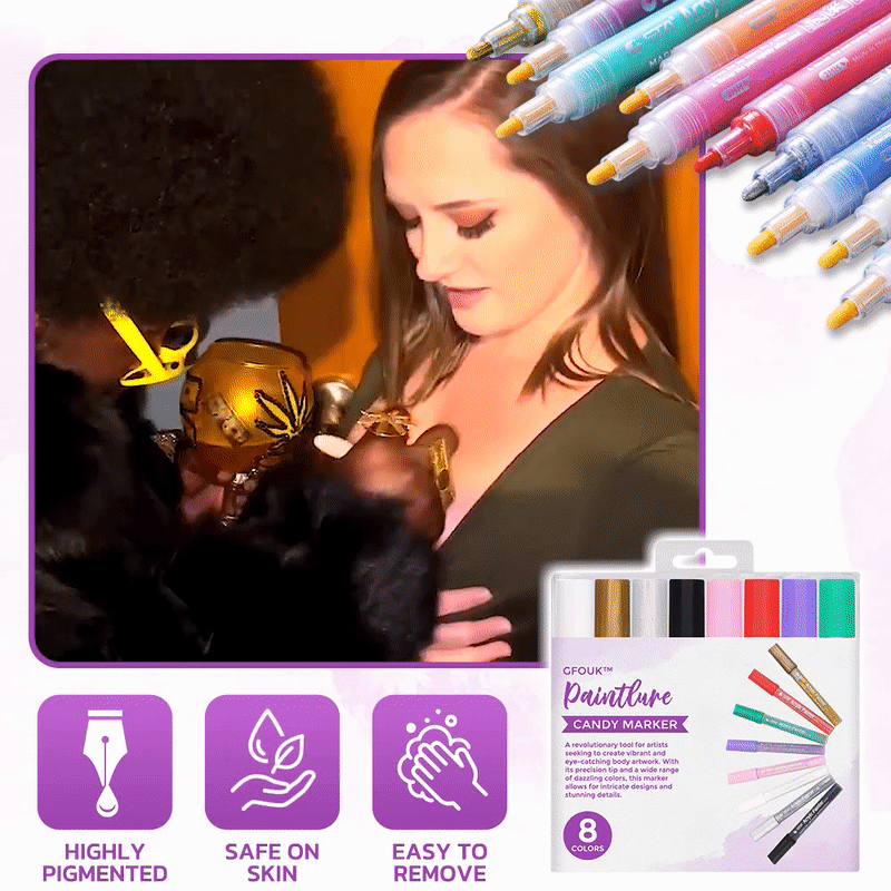 With its high-quality nylon tip, the GFOUK™ Paintlure Candy Marker guarantees smooth and precise writing, making it the perfect tool for artistic expression on any surface, including your own body. Whether you're crafting on paper, canvas, or even using it as body art, this marker is your versatile companion for bringing your creativity to life.