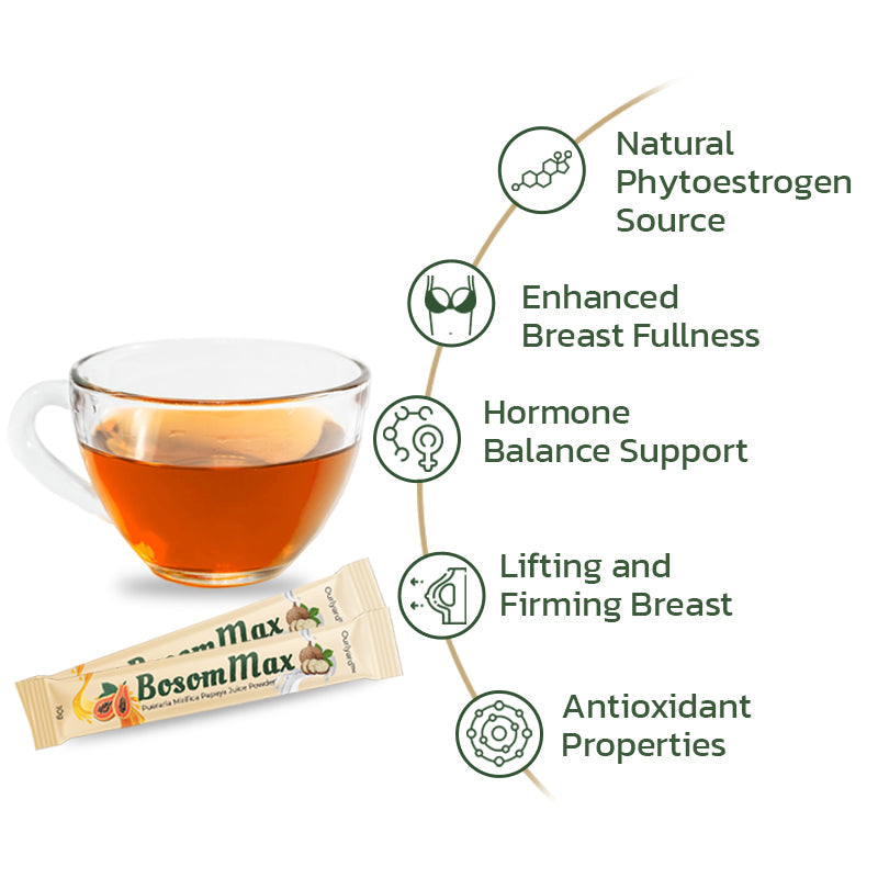 Phytoestrogens are naturally occurring substances in plants that may imitate the human hormone estrogen. They are present in a wide range of plants, including Pueraria Mirifica and Papaya. In addition to possibly influencing many biological systems and offering health advantages, phytoestrogens have the ability to bind to estrogen receptors, enhancing breast size, skin’s elasticity, and firmness around the breast area.
