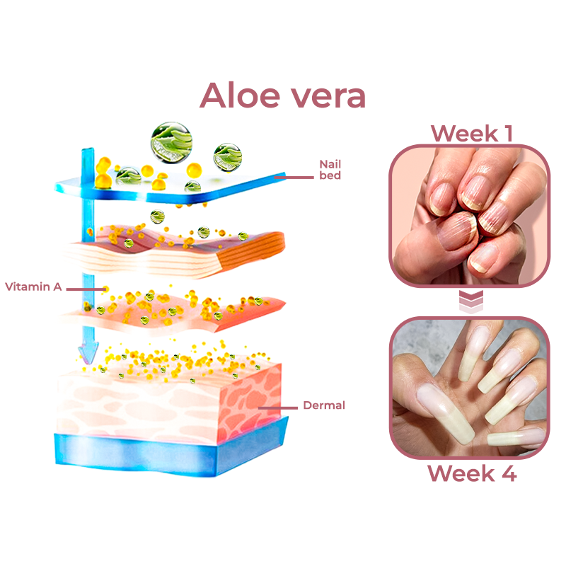 Applying aloe vera to the stratum corneum works wonders in keeping it soft and moisturized, nourishing the aging layer and restoring its youthful texture. The powerful combination of aloe vera and vitamin E enhances hydration, doubling the moisturizing effect and accelerating the process. As a result, dry nails can be resolved within just one week, and the risk of peeling nails is minimized, ensuring your nails maintain a healthy and attractive appearance.