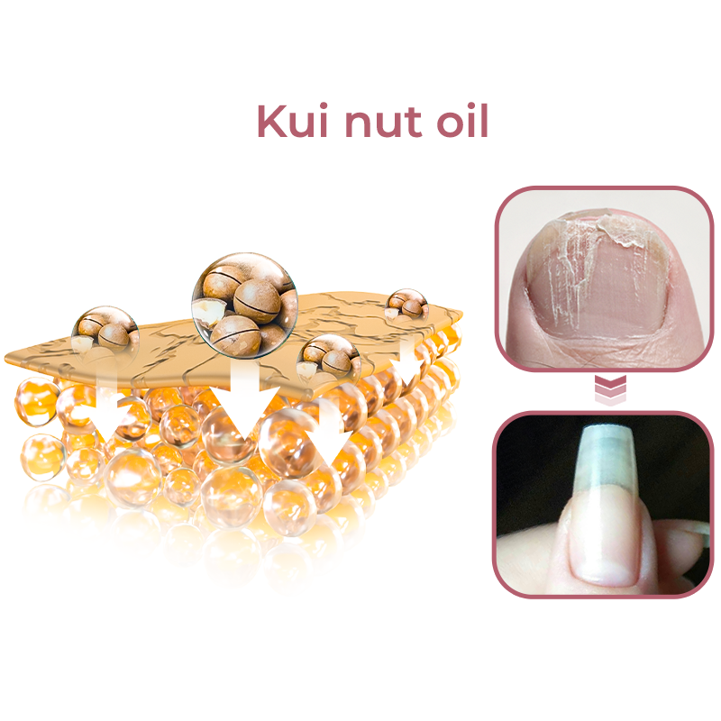 Tap into the incredible power of kui nut oil, packed with essential nutrients like linoleic acid, oleic acid, and vitamin A, which are absolutely crucial for maintaining the health of your nails. When united with the nutritional might of vitamin E, these potent nutrients synergize to deliver rapid nourishment to your nails from the inside out. Witness the magic of cell regeneration taking place, resolving the issues of dryness and brittleness within just one week.