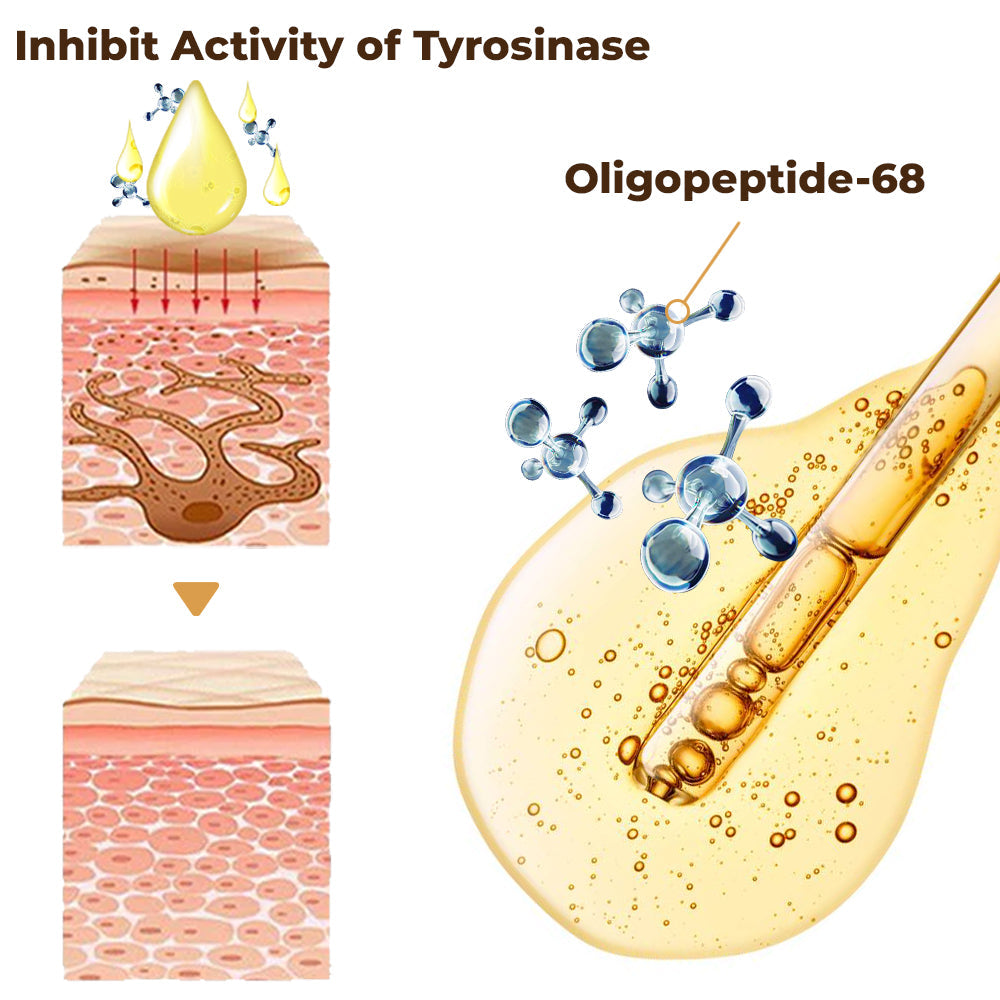 Oligopeptide-68 is a synthetic peptide that has been investigated for addressing skin pigmentation issues, including hyperpigmentation. Its mechanism of action is tied to its ability to inhibit the activity of tyrosinase, an enzyme that plays a central role in the production of melanin. By inhibiting tyrosinase activity, Oligopeptide-68 can lead to a reduction in the production of melanin, contribute to a more even skin tone, and reduce spots, age spots, and post-inflammatory hyperpigmentation.