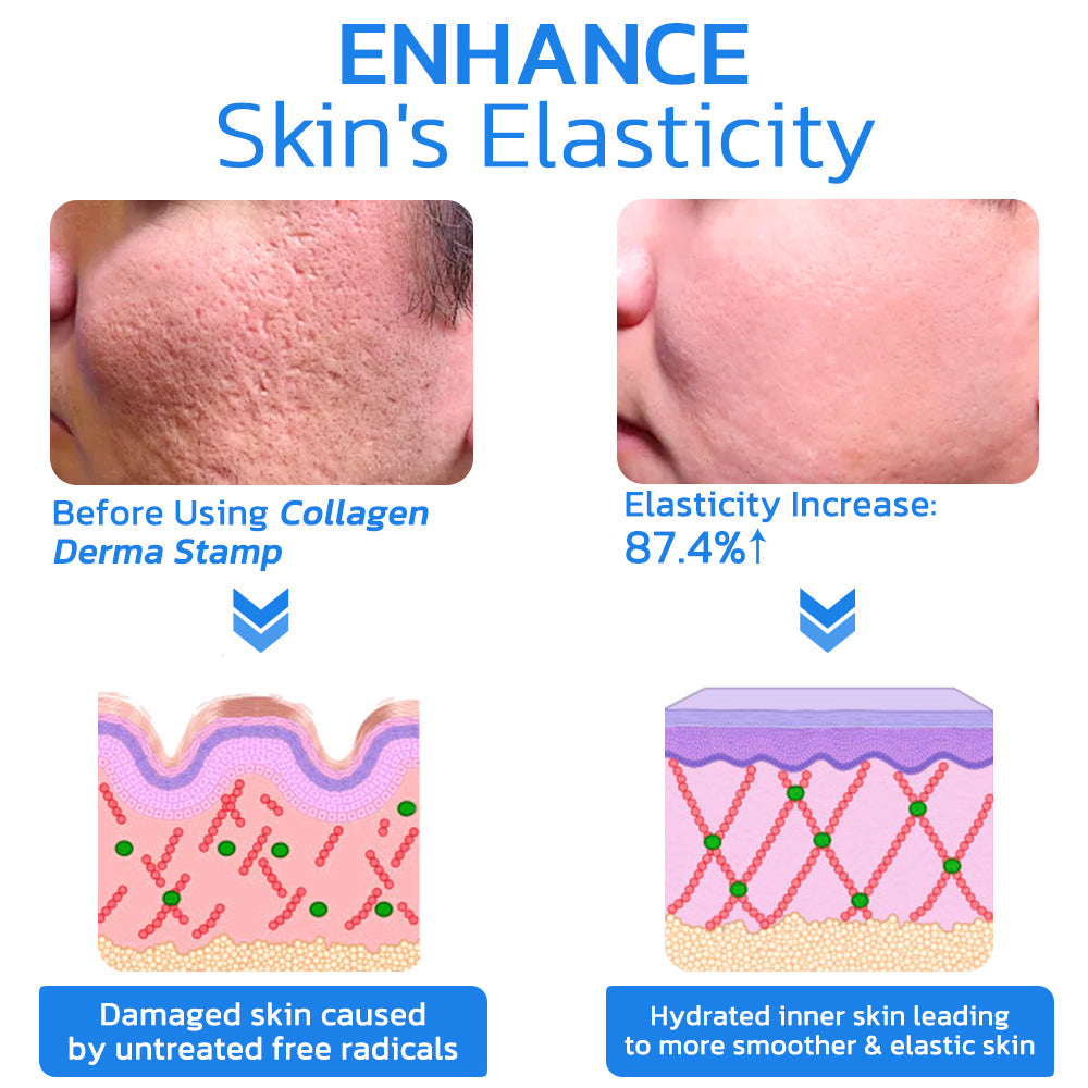 The flysmus™ PockmarksNeedling Collagen Derma Stamp is designed to stimulate the skin, promoting a smoother, firmer, and tighter complexion. This convenient at-home solution allows users to effectively diminish the appearance of wrinkles, fine lines, acne scars, and pigmentation, providing a simple yet powerful tool for enhancing skin quality.