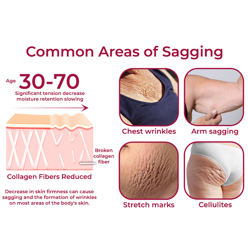 In general, as you reach the age of 25, your body naturally undergoes the aging process. The production of collagen, which is vital for maintaining the skin's structure, and elastin, responsible for the skin's ability to bounce back, begins to decrease, leading to a decline in skin elasticity. This particularly affects women. Furthermore, the rate at which cells renew themselves slows down, leading to sagging and the development of wrinkles in most areas of the skin on the body.