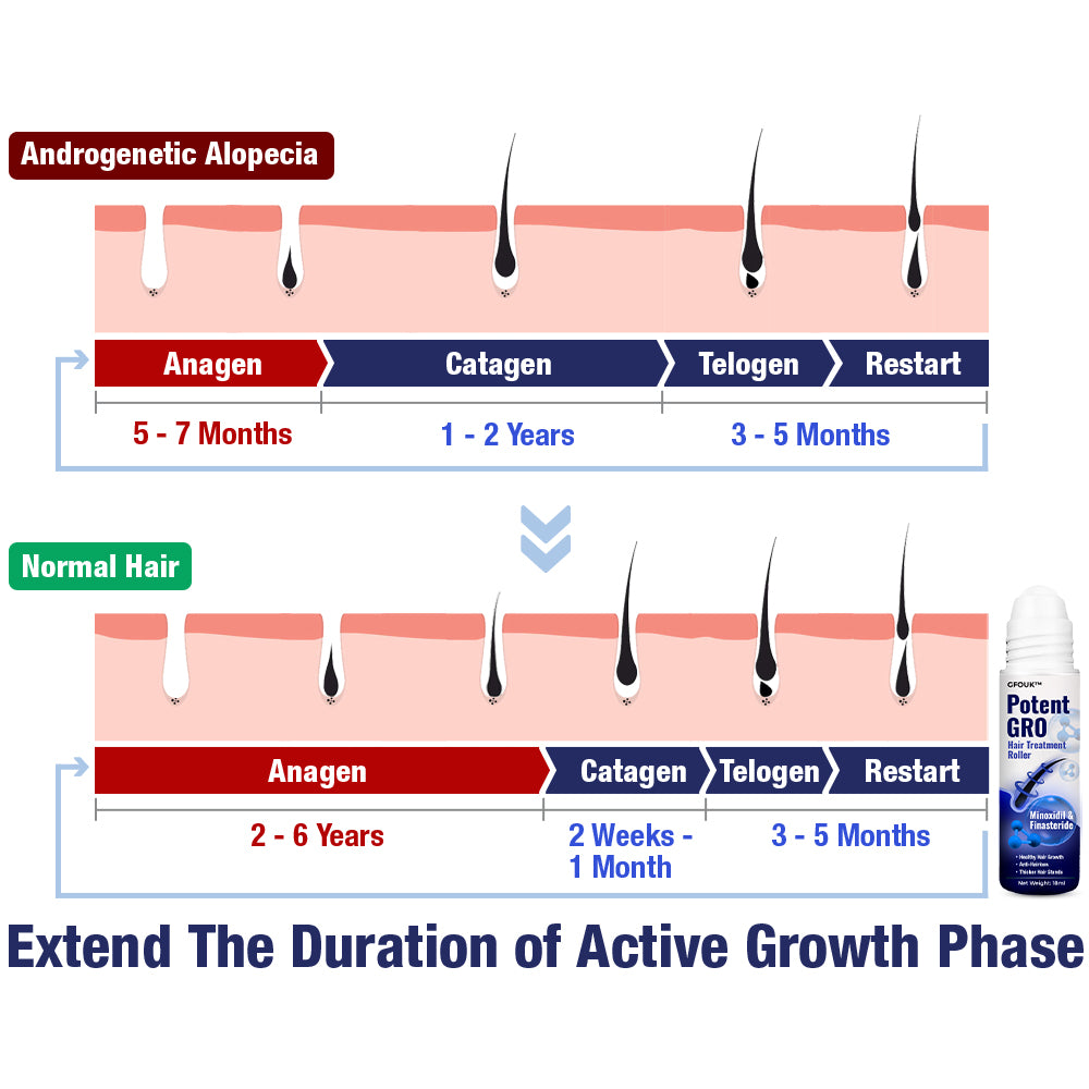 Moreover, it extends the duration of the anagen phase, the active growth phase of the hair cycle, facilitating prolonged hair growth before transitioning to the resting phase. Unlock the potential for healthier, fuller hair with PotentGRO Hair Treatment Roller.