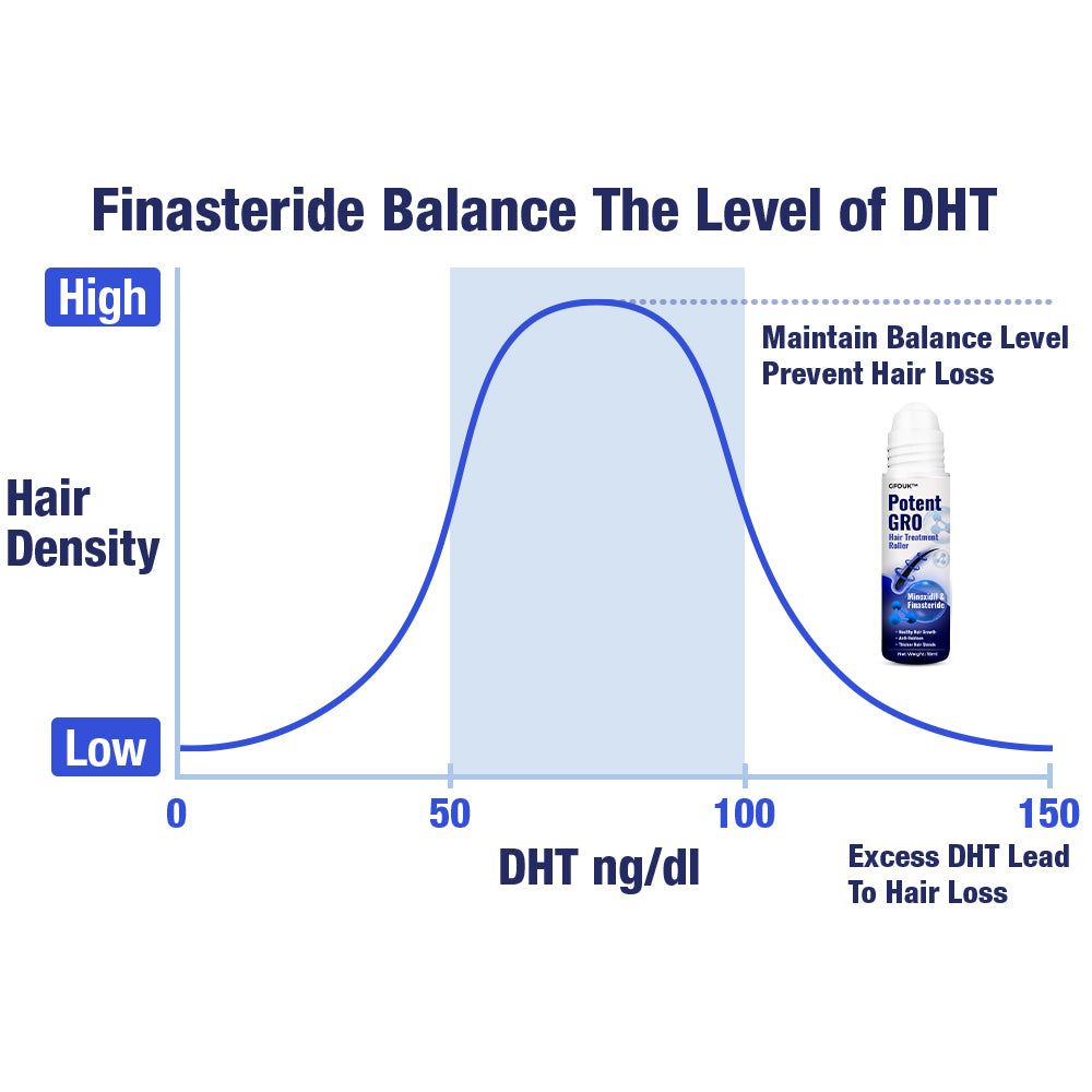 DHT (dihydrotestosterone) is a hormone derived from testosterone and is essential for the development of male sexual characteristics during puberty. However, excessive levels of DHT or increased sensitivity of hair follicles to DHT can contribute to hair loss in individuals with androgenetic alopecia. Aim at balancing the level of DHT, finasteride can inhibits the overproduction of DHT by reducing the activity of the enzyme 5-alpha reductase.. It contributes to slowing down the process of hair loss, and it is particularly effective in preventing hair loss at the crown and the top of the head.