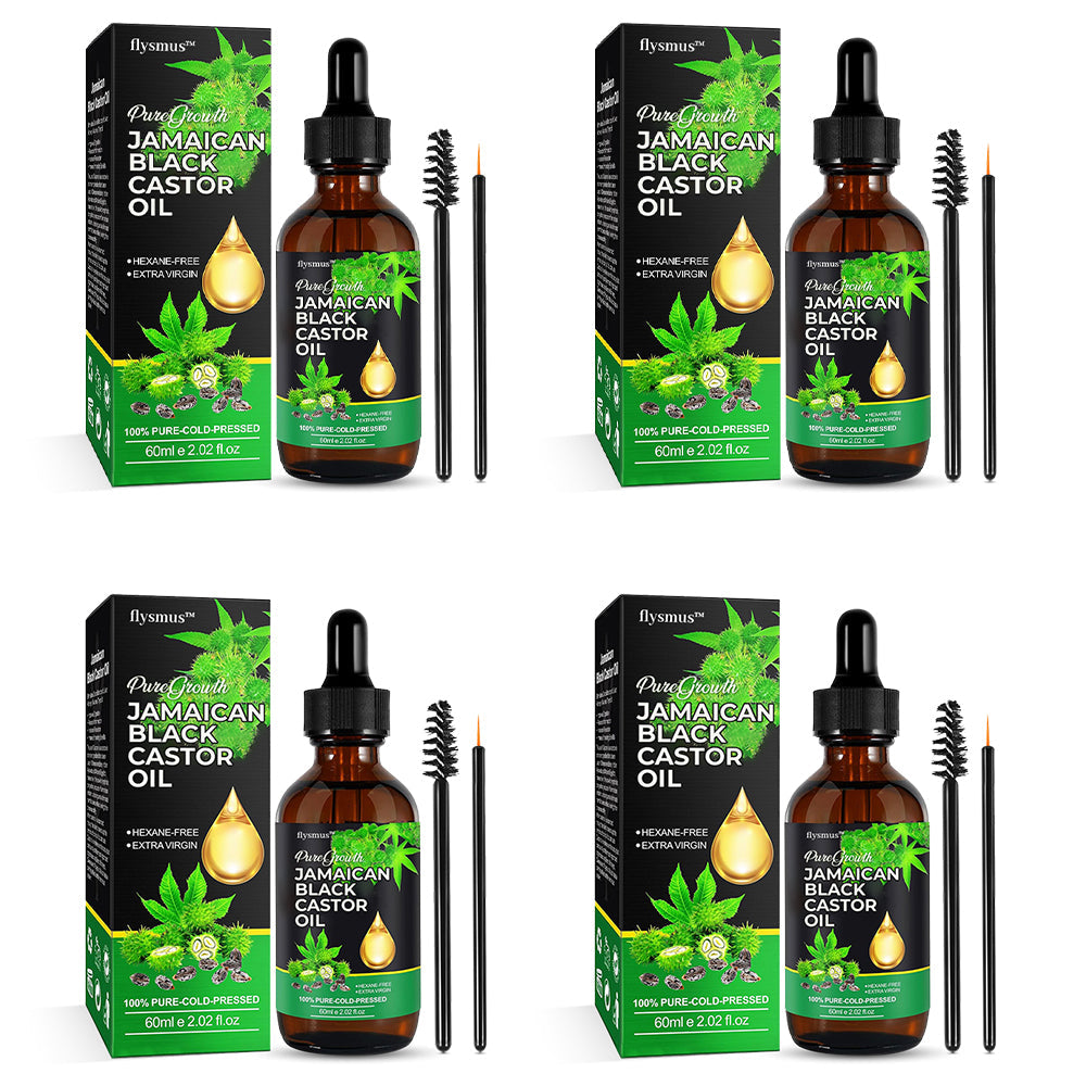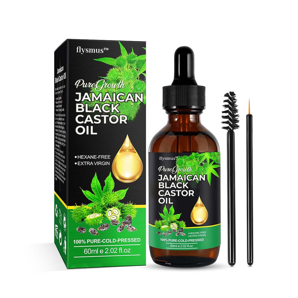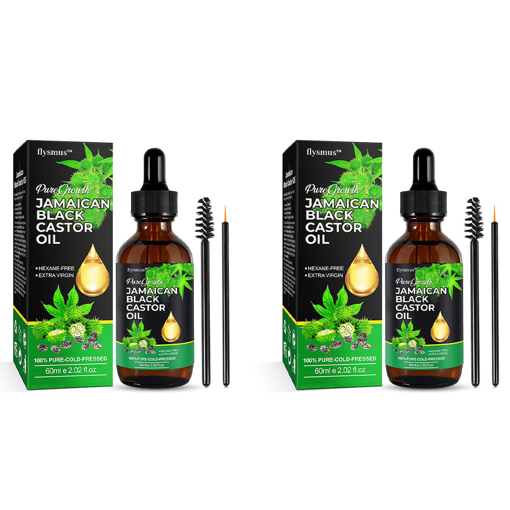 flysmus™ PureGrowth Jamaican Black Castor Oil makes use of the powerful and popular natural remedy, Jamaican Black Castor Oil. The oil is 100% pure and natural, cold-pressed and unrefined, and rich with vitamins and fatty acids. This versatile oil has been used for generations to address various hair concerns, such as promoting hair growth, boosting scalp health, and stimulating dormant hair follicles. Its effectiveness and versatility have made it a trusted staple in hair care and beauty routines worldwide.