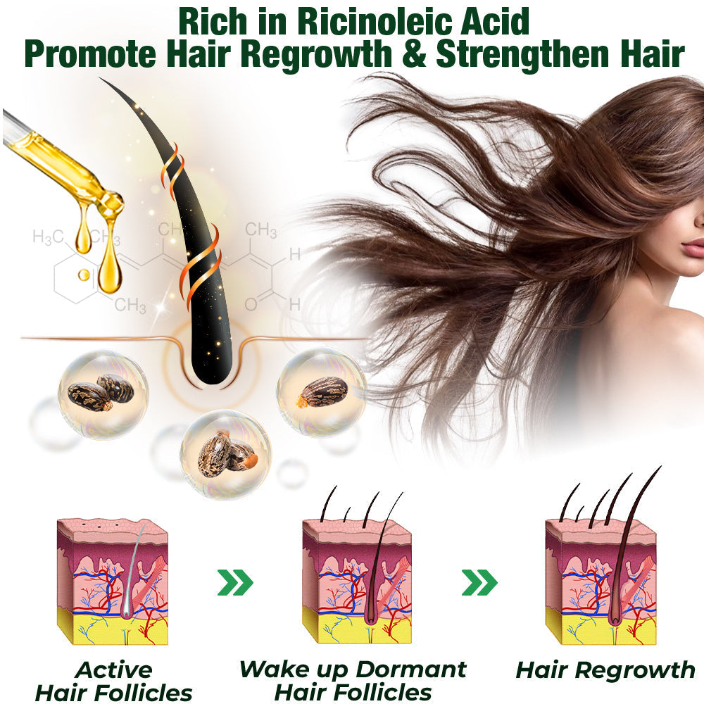 Black castor oil, derived from roasted castor beans (Ricinus communis), is a natural elixir for promoting hair growth. A standout feature of black castor oil is its potential to stimulate hair regrowth, particularly in areas affected by hair loss or thinning. Thanks to its high ricinoleic acid content, this oil possesses remarkable strengthening properties that can awaken dormant hair follicles, fostering the emergence of new hair growth.