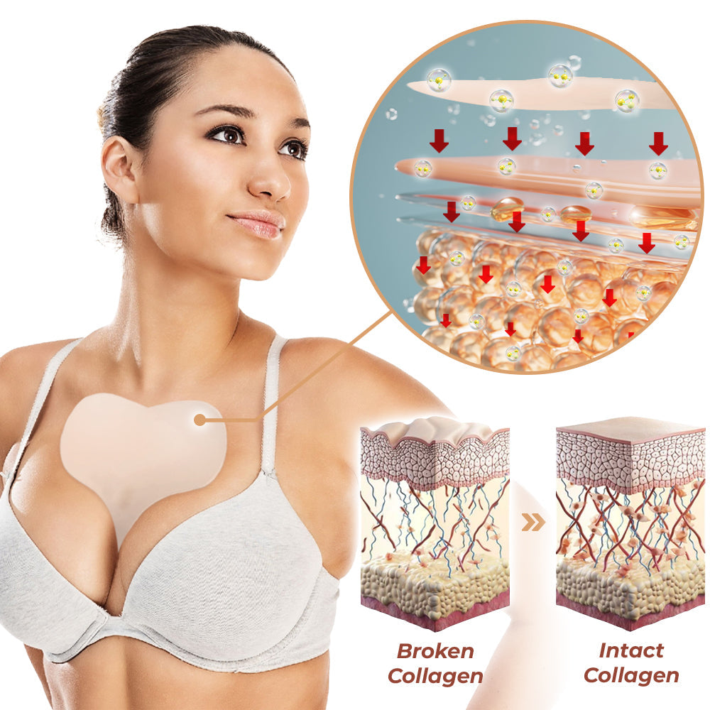 Our revolutionary treatment Patch also leverages the collagen-boosting prowess of retinoids. By applying this patch to your chest area, you're providing a targeted and continuous supply of retinoids directly to the skin. This process initiates a cascade of collagen production, gradually restoring the skin's elasticity and firmness of breasts and improving the imperfect shape of breasts, such as east-west breasts or sagging breasts.