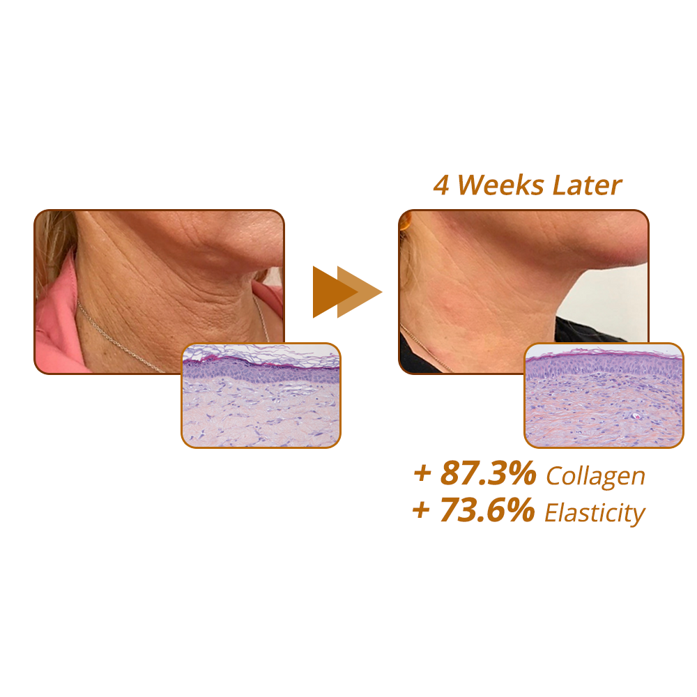 "After experiencing weight loss, I noticed sagging neck skin, wrinkles, and fine lines, causing frustration and self-consciousness. Seeking a solution, I chose RevitaPeptide Reversal Serum. Within a few weeks, my skin's texture and appearance have greatly improved. The serum effectively smooths fine lines, boosts skin hydration, and adds a plumpness to my skin." - Kae Jamison - 47 years old