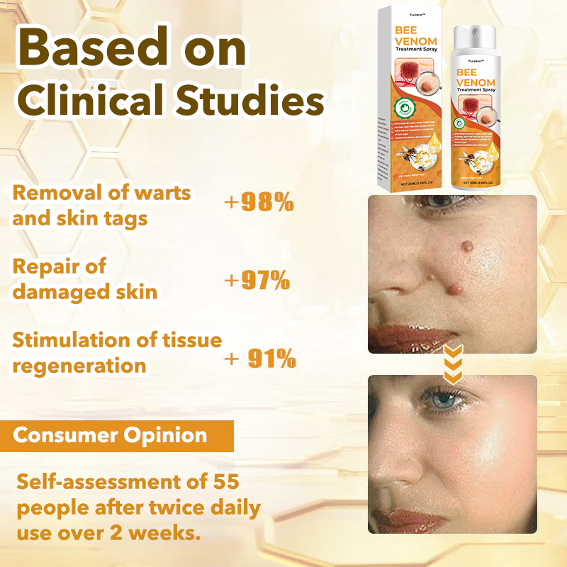 "I was always ashamed of skin warts near my eyes that even caused vision problems. Although I tried expensive treatments, it was difficult to get rid of them and the skin lump persisted. Luckily, someone suggested Furzero™ Bee Venom Therapy Spray, and I decided to give it a try. Shockingly, those pesky warts completely disappeared without leaving a single trace. I couldn't be happier with the results!"