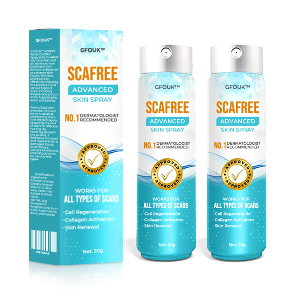 GFOUK™ Scafree Advanced Skin Spray is formulated with allantoin and an advanced scar treatment. Our formula is designed to enhance skin health, firmness, and elasticity, effectively reducing the appearance of various types of scars, including surgical scars, burn scars, hypertrophic scars, and keloids. This silicone-based scar spray creates a breathable layer that enhances skin hydration, protects scar tissue, regulates collagen synthesis, and balances skin growth processes, resulting in smoother and more even-looking skin.