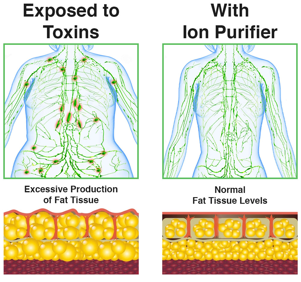 The average person is exposed to more than 700,000 toxic chemicals a day, such as pm2.5, heavy metal, virus, smoke, pollen, harmful gas, formaldehyde, and many more. Toxins leads to blockages in the lymphatic system. These can cause clogged vessels and swelling of the limbs which elevates fat tissue production and lead to fat build up that causes excess weight gain and obesity.