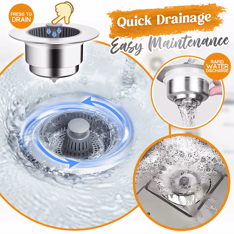 Combining water storage, anti-clogging, and odor control functionalities, this ingenious sink drain strainer serves as a strainer, stopper, and odor filter all in one. It guarantees a blockage-free kitchen sink by effectively trapping food particles.