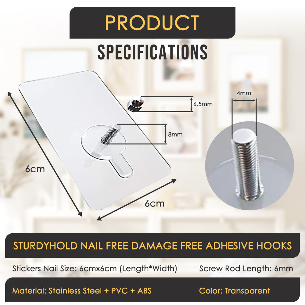 SturdyHold Nail Free Damage Free Adhesive Hooks