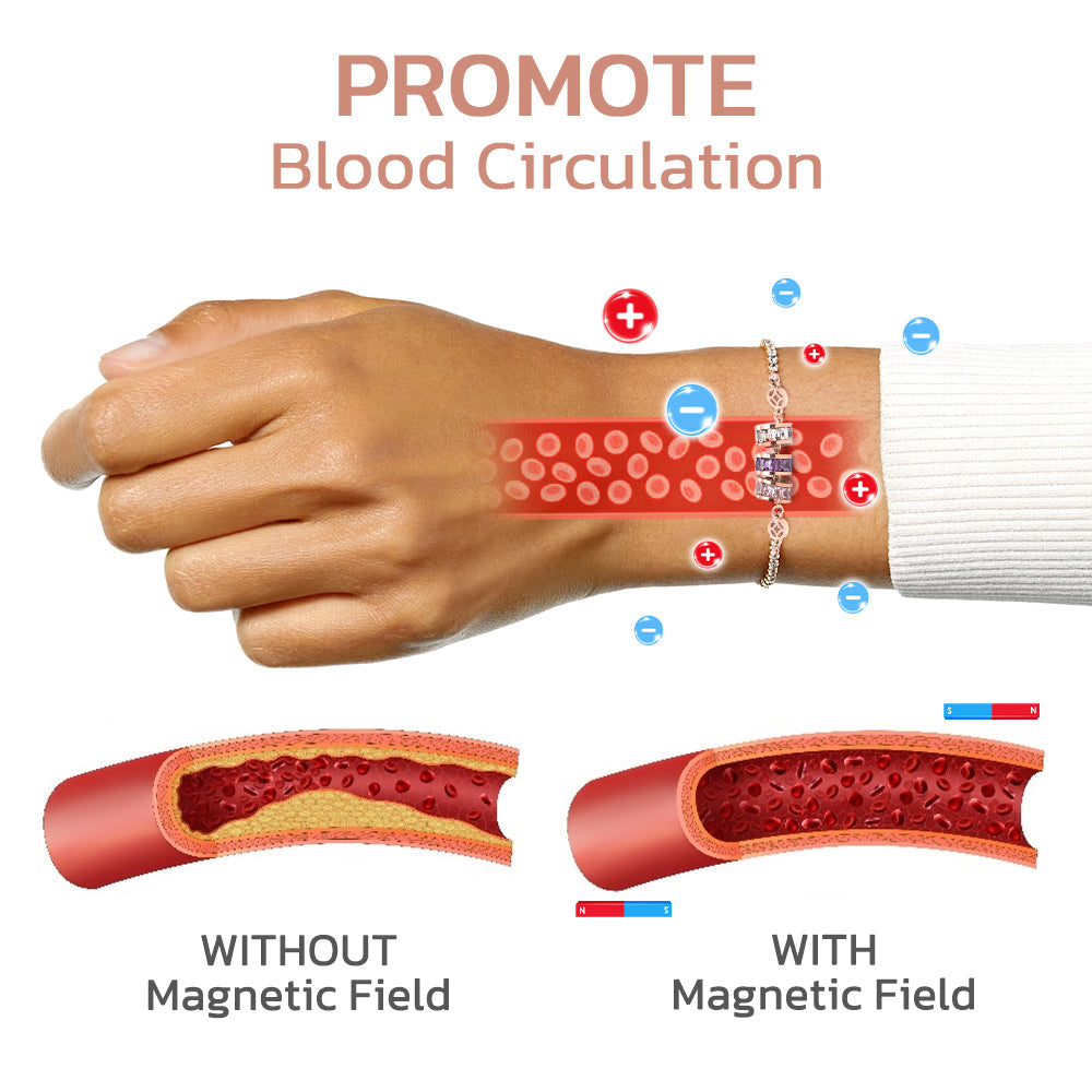 The TripleWishes Threanic Spin Bracelet release negative ions which could increase the permeability of the cell membrane, to facilitate the absorption of tissue fluid into lymph vessels. Therefore prevent the blockage of the lymphatic system.