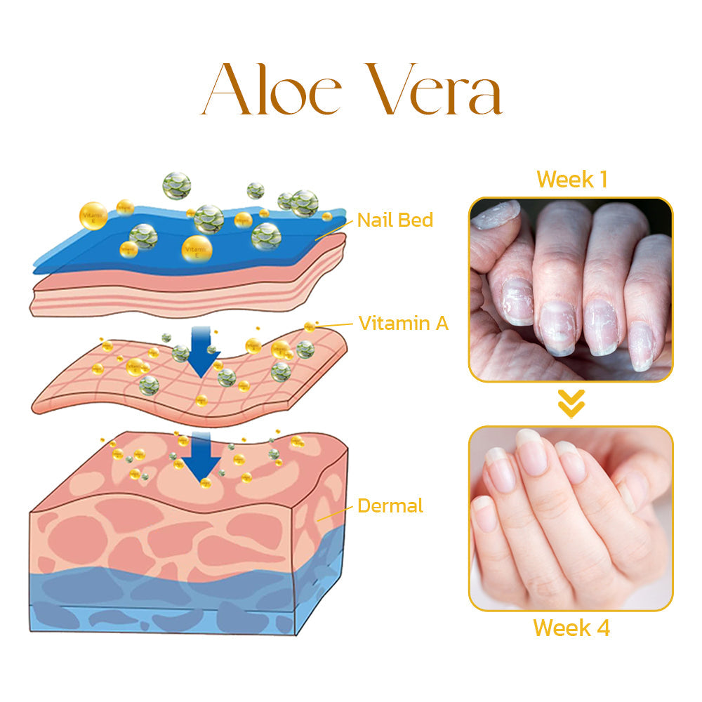 Enhance hydration, double the moisturizing effect, and restore youthfulness by applying aloe vera and vitamin E to the stratum corneum. This powerful combination nourishes the aging layer, keeping it soft and moisturized. In just one week, resolve dry nails and minimize the risk of peeling to maintain healthy, attractive nails.