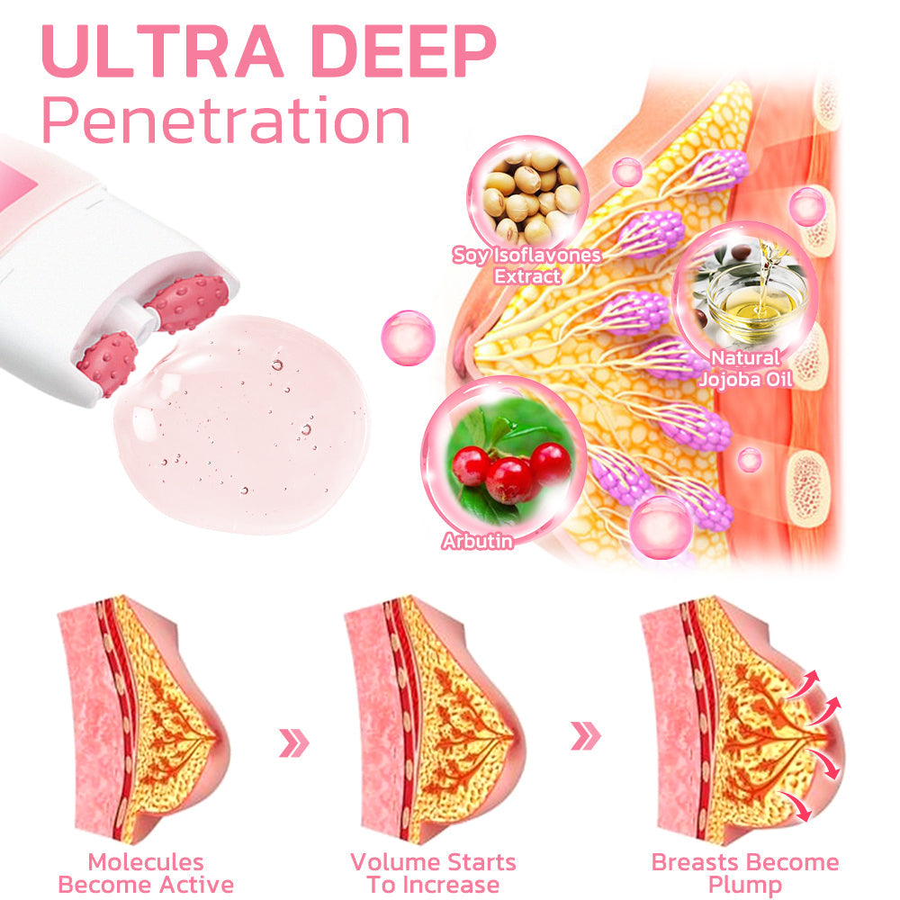 The flysmus™ X2Cup Enhancement Massage Gel works differently from estrogen and fat-based enhancement products. Instead, it utilizes Type 3 Peptide Protein to achieve the desired effect. This unique protein has a natural affinity with the body, allowing it to penetrate the glandular vesicles within a mere 5 minutes. As a result, the dry glandular vesicles of the breasts can quickly absorb nutrients, leading to growth and repair of the cooper's ligaments with enhanced elasticity.